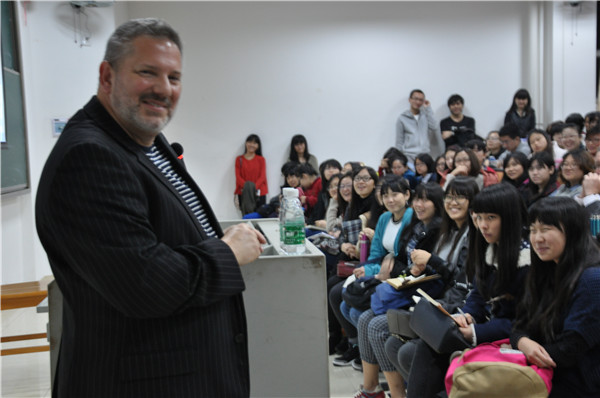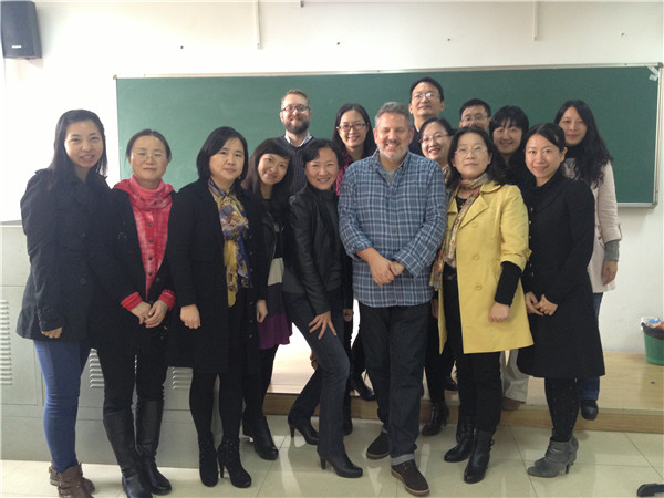 本网讯 12月8日到18日,应我校英文学院的邀请,英国皇家莎士比亚剧团高级声音和剧本培训师Michael Corbidge来访我校,与我校英文学院的老师进行了交流和学习,并为学生们精心准备了一系列的戏剧表演培训。