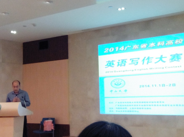 本网讯 11月2日上午8点30分,“外研社杯”全国英语写作大赛复赛暨广东省本科高校英语写作大赛决赛颁奖典礼在中山大学外国语学院隆重举行。我校学子在本届写作大赛中表现出色,其中来自英文学院的张涵获得广东赛区特等奖并将参加全国决赛。