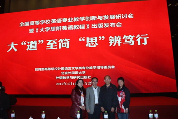 本网讯 4月11-12日,由教育部高等学校外国语言文学类专业教学指导委员会主办、北京外国语大学和外研社协办的全国高等学校英语专业教学创新与发展研讨会在青岛召开。我院院长温宾利、副院长冯光武及系主任许勉君、刘胡敏一行4人参加了会议。