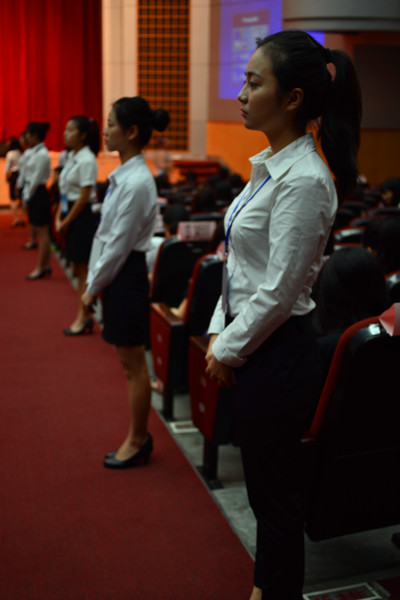 本网讯 6月11日中午12:00,2012级级委、剧组核心成员及英文团学的工作人员就来到云山会堂,为戏剧大赛定位道具、布置舞台、调试灯光和音效。尽管天气炎热,酷暑难耐,这也并未消弭同学们的工作热情。