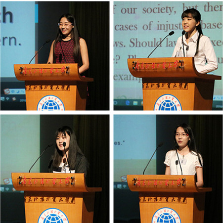 第二个环节是即兴演讲。在本环节中,每位选手都有两分钟的演讲时间以及一分钟的答疑时间。来自1406班的刘惠铭同学以“法律应严厉还是通达”为题进行了演讲,表现突出。首先,她承认了严法的必要性,随后又以《悲惨世界》中冉阿让因偷面包给妹妹充饥最后被判刑19年的故事为例,阐述了法律有时也需要通情达理的观点。最后在评委问到“你认为怎样的法律需要严苛,怎样的法律需要通达”的时候,她表示自己暂时无法给出明确的定论,因为无论是立法还是修改法律都饱受争议,很难作出一个即时性的判断。