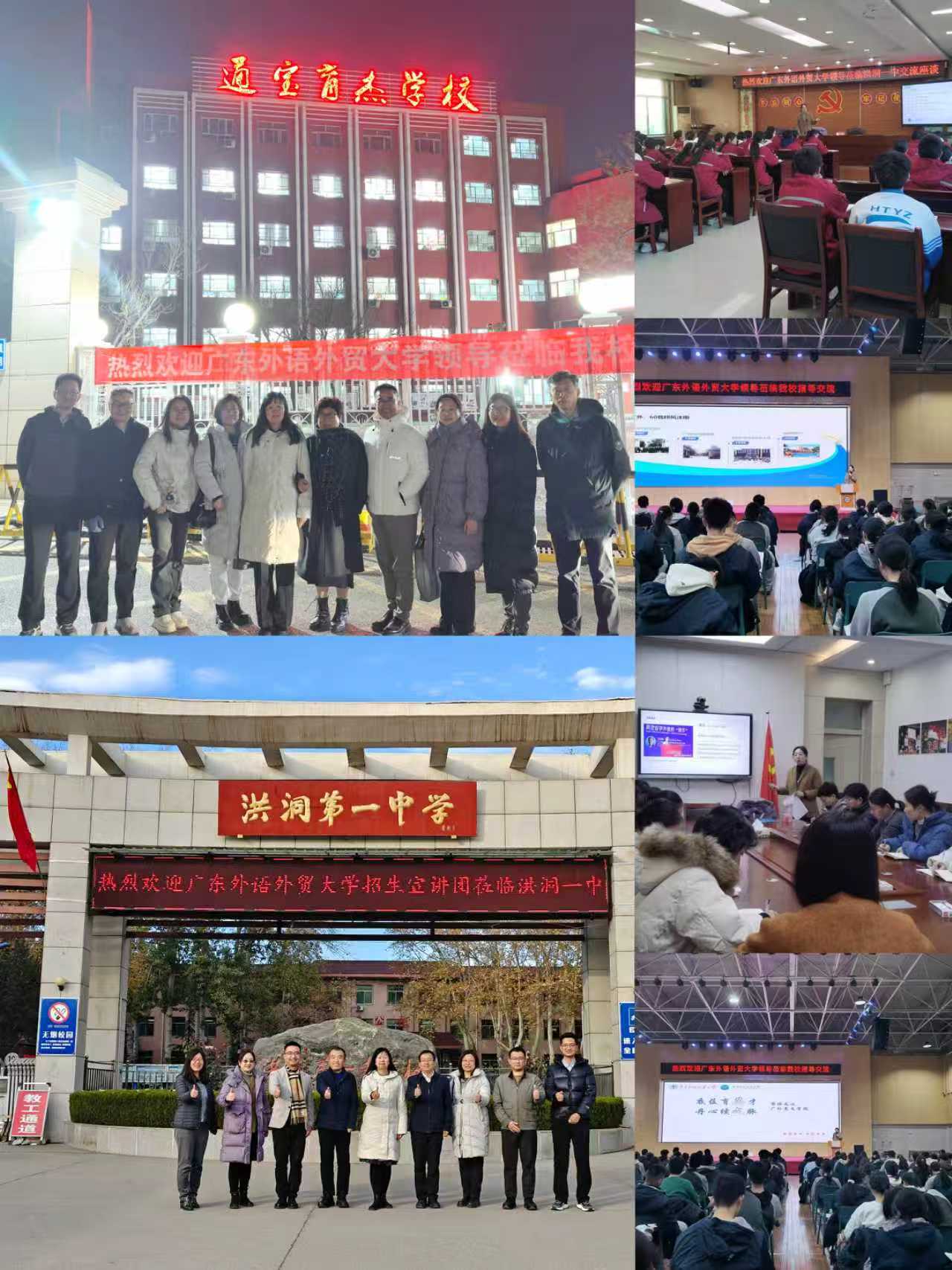 团队一行在两地招生宣传期间分别面向通宝育杰学校高二、高三年级的220余名师生代表和洪洞第一中学100余名师生代表详细介绍了广外和英文学院的办学历史、学科专业设置、办学特色优势以及在晋招生政策,并围绕“英文读后续写”开展专题讲座。