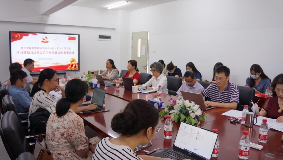 本网讯 为进一步加强学院党风廉政建设,9月18日下午,英文学院在一教451会议室召开党委理论学习中心组(扩大)学习会。会议由学院党委书记林绍雄主持、主讲,学院党委委员、院领导、系部办主任、党支部书记和各年级辅导员出席了会议。