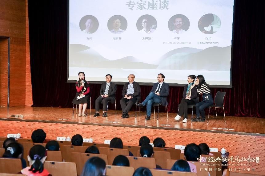 本网讯 “云对雨,雪对风,晚照对晴空……”10 月 22 日,伴随着《声律启蒙》悠扬的旋律,“2023 中华经典翻译马拉松”(广州赛区) 颁奖仪式在广州图书馆(以下简称“广图”)举行。活动当天,共有100 位参赛选手在广图同场竞技,共同传译中华经典。最终,我校张周薇、丘越等 12 名学子胜出,喜获一等奖两项,二等奖两项,三等奖八项,在广图 2023 年度 24 名“中华文化传译人”中占领“半壁江山”。我校英语语言文化学院、英语教育学院、图书馆领导出席活动并代表学院(单位)受领“优秀组织单位”奖牌。英文学院方开瑞教授,翻译与国际传播研究中心主任潘莉教授担任活动嘉宾。