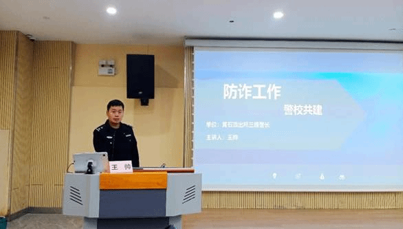 接着,王帅警官开展了反诈专题讲座。他首先解读了习近平总书记对全国反诈工作作出的指示,为同学们强调反诈工作的重要性。又通过大量列举自己工作中的相关警情案例,为同学们总结了四种常见电信诈骗类型:冒充客服诈骗、冒充公检法诈骗、刷单诈骗和网络交友诱导投资诈骗。他深入浅出的分析,使得同学们对诈骗分子的诈骗手段、不同诈骗类型的应对方式等都有了更加清晰全面的认识。最后,王帅警官提醒同学们在转账前需“三思而后行”,做到不轻信不透露不转账。全体同学必须及时注册好国家反诈中心app,进一步保障个人的权益和防止上当受骗。