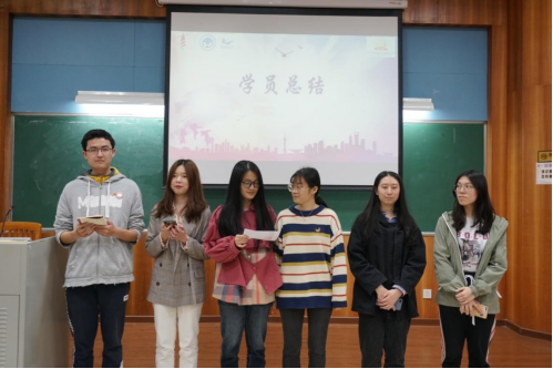 学员代表、班长程适澜希望学员们在未来的日子里将青马班的经历作为奋斗的起点,以青年马克思主义者的标准来要求自己,关心国家大事,心怀热忱。青马班组织委员陈艾尔寄语学员们要将青春梦与中国梦有机结合起来,继续继承和发扬马克思主义,为实现中华民族的伟大复兴而持续奋斗。李维源同学从理论与实践两方面来总结了开班以来的各项学习活动,他认为我们要继续加强自己的认识然后努力投入到实践中,做到“实践出真知”。