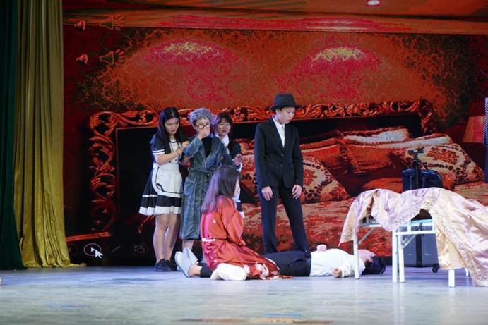1803班的The Well以诡异的音乐、昏暗的灯光,惊心动魄的表演迅速地把观众带入到剧情之中,而选手低沉的语调,恰到好处的配音,为诡异的气氛更是增添了一份神秘,把一个杀人成瘾的儿子形象体现得淋漓尽致。一口可以让尸体凭空消失的井,紧扣观众的心弦。直到儿子把对他母亲实施家暴的父亲杀死,与此同时,井也不再拥有魔力时,重重的疑团才揭开。这个故事不得不令人深思。杀人成瘾的变态心理植根于家暴后留下的童年创伤,而这个父亲最终对儿子心理扭曲的爱,让他最终自食恶果。作品之精彩,令现场报以热烈的掌声。