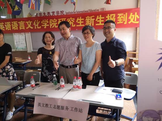 英文学院党委书记林绍雄、党委副书记黄晓梅、副院长韩锐、吴庄、刘胡敏及各年级辅导员一早便在七教大厅组织指导开展迎新工作。今年,英文学院的迎新特色:1.设立“英文教工志愿服务工作站”,学院教师来到现场,耐心地为前来报到的新生和家长解答关于教学方面的疑惑;2.“留下大学第一张照片”为新生和家长拍照服务