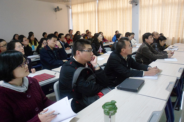 本网讯 11月27号下午2:30,来自英国雷丁大学的Jeanine教授在七教423室与英文学院的师生们分享了她最新的研究成果——本族语言者与第二语言者词汇知识对比。讲座由广外语言学及应用语言学研究中心的姜琳副教授主持,英文学院院长温宾利教授和副院长余盛明教授出席了讲座。