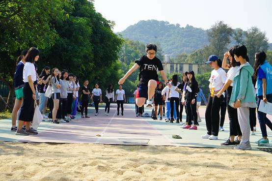 微风徐徐中,女子跳高开始了。1711班的戴丽霞不但获得女子跳高比赛第一名,还以优异的成绩打破了院女子跳高记录。在标枪的竞赛中,1712班的梁广基和1512班的郑雨晴分获男女标枪组冠军。郑同学在接受采访时表示,往年两届院运会的发挥失常使她略有失望却不愿放弃,同时她热心地与师弟师妹们分享了标枪投掷的小技巧。跳远比赛中,1603班的华旭东同学以4.68米的优越成绩斩获男子组冠军。1501班任晓婷选手凭借第二轮的惊艳一跳,一举夺得女子组桂冠。