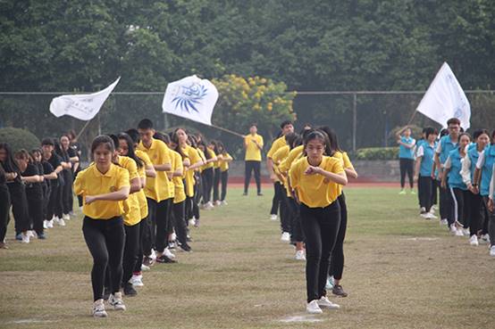 各学院的表演充分彰显了各自的精神风貌,观众们鼓掌连连。最后,英文学院的大型团体操表演——“全运惠民,健康中国”压轴出场,他们将武术、健美操、瑜伽、现代舞等完美结合,气势感染全场。