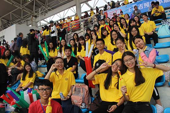 英文学院观众及团学工作人员为选手喝彩