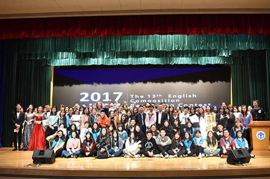 本网讯 11月23日晚19:00,英文学院第13届作文朗诵大赛在六教报告厅举行。英文学院院长温宾利、副院长张欣、副院长姜琳、教授欧阳护华、外教James Campion出席本次大赛。英文学院教授赵一农、牛瑞英、姜琳、钟虹、伍志伟、潘春梅、杜寅寅担任本次评委;来自英语教育学院的外教Biljana Nikolovska为本次大赛做点评嘉宾。