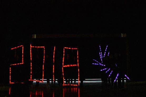 紧接着,晚会的第二部分由英文团学的集体节目开场。幽默的方言配音,描绘了大学生活中的点滴趣味;团学干部用荧光棒拼凑出的FELCLOVE YOU字样以及团委书记王晞老师的热情参与,让观众感受到了英文团学的活力四射,现场响起阵阵欢呼。接下来是1707班和1710班的节目Howto find you?。他们将《西游记》中的故事加以改编并融入舞蹈、音乐多种元素,令现场观众耳目一新。下一个节目是校舞队的舞蹈Affection for water sleeves。她们用《诗经·小雅·采薇》中的名句“昔我往矣,杨柳依依。今我来思,雨雪霏霏”编排出了古色古香的中国舞。漫舞的轻纱,扶风弱柳般的身姿把观众的思绪带回了千年前的亭台轩榭。