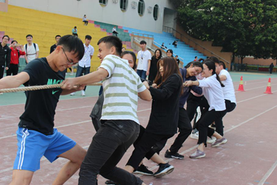 最后一个项目是“拔河之九九归一”。这是最为受瞩目的项目,每一队在比赛中都使出浑身解数,将那块象征胜利的红布条拉向自己一方。选手们的青春活力在赛场上激烈碰撞,这一刻,气氛达到了高潮。在激烈地角逐中, “树上的鸟儿成双队”取得了最终的胜利。