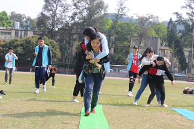 首先开始的项目是“趣味接力之西天取经”。各队选手在这一项目中都展现出了极强的团队合作能力,成功地克服了游戏过程中出现的眩晕、失衡、目不能视等“九九八十一难”,最终完成了挑战。其中,来自1713班的“什么都队”凭借出色的技巧拔得头筹,赢得观众们的一致喝彩。