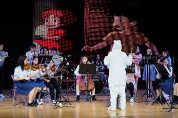 校管弦乐团演奏的一曲《龙猫爱上金鱼公主》,运用不同的乐器和多彩的音色,演奏出龙猫的单纯童真和金鱼公主不顾一切追爱的勇气,晚会在温暖的氛围中拉开序幕。
