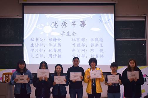 大会还进行了“团学之星”颁奖仪式,对各部门在上学期活动和工作中表现优秀的干部、干事进行表彰。