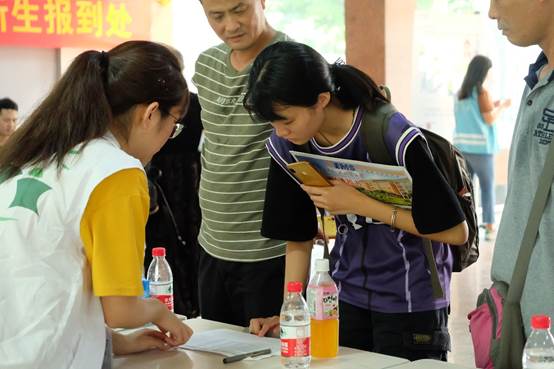 迎新当日,英文学院团委学生会派出全体学生干部,并在学院内招募75位同学组成迎新志愿者团队,为英文学院迎新工作保驾护航。布置新生签到区域、引导新生和家长按照流程准确签到、维持迎新现场秩序、接听咨询电话、后勤服务等一系列任务都由迎新志愿者团队完成。每一位志愿者都面带笑容、用饱满的精神面貌迎接2019级新生的到来。