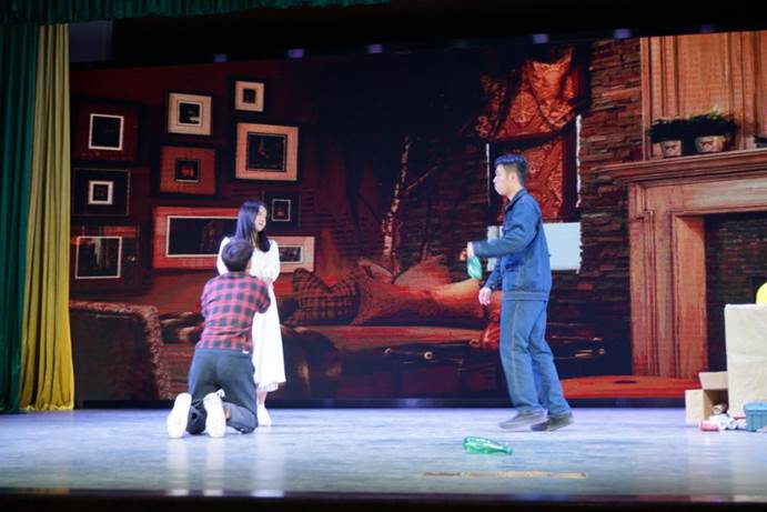 班级参赛作品各有千秋,精彩迭起。故事取材丰富,立意深刻,或反映爱的真谛,或反对暴力,或呼吁坚持个性。比赛中,选手们全情投入,用丰富的表现力演绎一个个精彩的故事,引发大家对生活、社会的思考。1801班的Mars and Venus讲述了一个男性美妆博主的故事。他喜欢化妆,喜欢粉红色,喜欢芭蕾,而这些往往被认为是缺乏男子气概的表现。每天他都要背负“异类”的标签,承受来自亲人的嘲讽和鄙夷,牵动了观众们的恻隐之心。故事最后男主对社会对于性别的刻板印象发出呐喊,主动反击,坚持所爱,引发了在场观众对性别与个性的深刻认识。1806班的Words cut和1809班的Gossip People直面社会问题,以严肃而冷静的方式,共同向我们传达了“良言一句三冬暖,恶语伤人六月寒”的道理。闲言碎语可以毁灭一个人,我们是时候该对语言暴力喊停了。