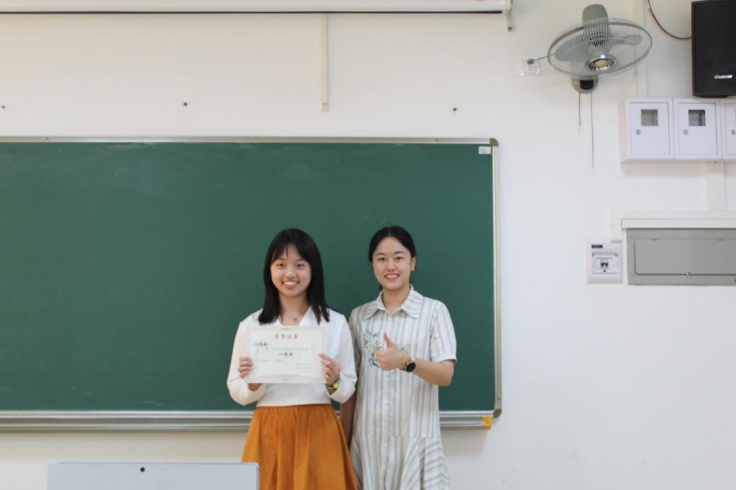 一等奖刘雅莉与韩老师合影
