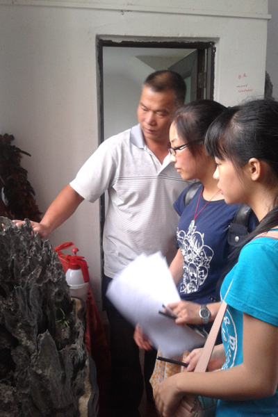 本网讯 被列为中国四大园林名石之一的英石具有悠久的开采和玩赏历史,7月20日上午,围绕着英德市英石状况及其发展前景这一主题,英文学院News Ⅳ 队调研组从英德市英城街前往中国英石之乡——望埠镇,展开调研。调研组一行人到望埠镇街道,对街道两旁的奇石店铺人员及常住居民派发了问卷,并进行了采访。