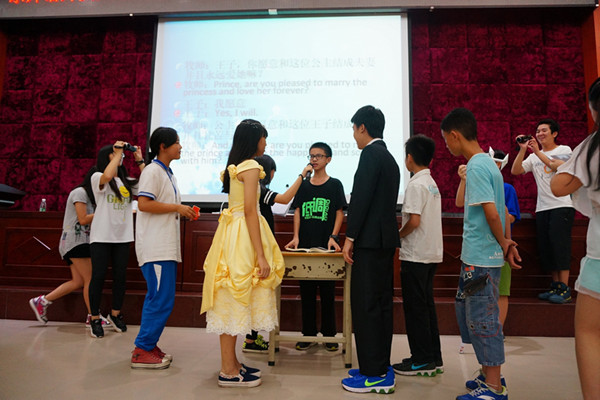 在队长和主任发言总结后,各班的学习成果汇报表演——英文戏剧演出开始。各班选取了不同类型或主题的戏剧,每个戏剧都经过修改、排练,以及经过了长时间的练习准备:学员努力练习发音,认真学习表情、肢体动作表现以及情景情感的把握,甚至有些表演服装都是自己亲手设计制作的,可谓诚意满满。戏剧中还将在CECL课堂中所学到的文化、习俗知识融入其中,例如《海的女儿》 中用到的婚礼习俗文化知识。