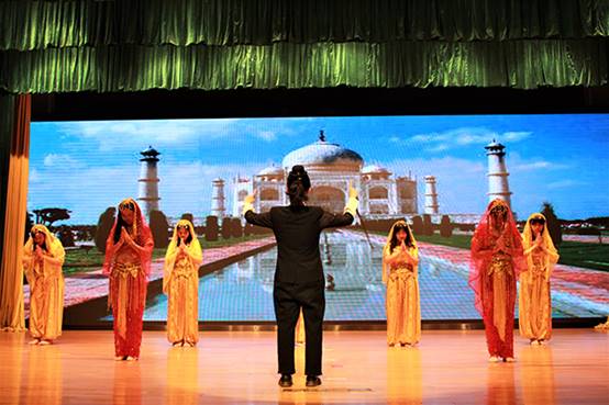 紧接着,晚会的第二部分由英文团学的集体节目开场。幽默的方言配音,描绘了大学生活中的点滴趣味;团学干部用荧光棒拼凑出的FELCLOVE YOU字样以及团委书记王晞老师的热情参与,让观众感受到了英文团学的活力四射,现场响起阵阵欢呼。接下来是1707班和1710班的节目Howto find you?。他们将《西游记》中的故事加以改编并融入舞蹈、音乐多种元素,令现场观众耳目一新。下一个节目是校舞队的舞蹈Affection for water sleeves。她们用《诗经·小雅·采薇》中的名句“昔我往矣,杨柳依依。今我来思,雨雪霏霏”编排出了古色古香的中国舞。漫舞的轻纱,扶风弱柳般的身姿把观众的思绪带回了千年前的亭台轩榭。