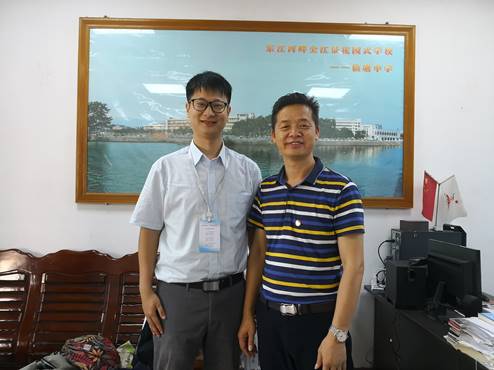 本网讯 5月31日,英文学院17级辅导员马骁老师带领仙塘G&A志愿服务队副队长黄嘉怡、戴丽霞及队员赖昊扬,前往广东省河源市东源县仙塘中学进行实地考察。