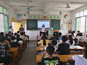 实地考察期间,副队长黄嘉怡、戴丽霞前往初一、二年级各班宣讲,对本次暑期英语三下乡活动作了简要介绍,主要宣讲内容有:英文学院简介、英语夏令营的开展目的、教学课程简介等。仙塘学子对丰富的英语专业课程、人文思想启蒙课程、各色各样的体育课程以及富有特色的第二课堂充满兴趣,积极地咨询活动事宜,两位副队长也耐心地为同学们解答。