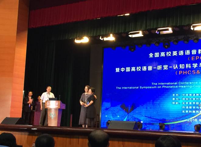 2018年9月14-16日英文学院刘莹老师及2016级研究生吴玉莹参加了在扬州大学举办的“全国高校英语语音教学研究国际学术研讨会(EPCC2018)暨中国高校语音-听觉-认知科学与二语语音教学研究前沿问题国际论坛”。此次会议由中国英语教学研究会语音专业委员会主办,由扬州大学外国语学院承办。来自全国高校两百名左右教师和研究生参加了会议。来自英国剑桥大学教授Francis Nolan,文莱国立皇家学院教授David Deterding以及中国社会科学院语言研究所研究员林茂灿等9位国内外知名语音听觉研究方面的专家进行了主旨发言。在英语教学研究会语音专业委员会成立十周年之际,首任会长来自广东外语外贸大学英文学院的王桂珍老师在本次大会上被授予终身成就奖。作为理事会成员,刘莹老师出席了专委会的常务理事会会议。通过此次会议,与国内外的专家学者交流了高校英语语音教学的研究成果。