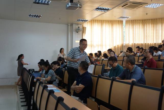 述职结束后,大学党委组织部副部长纪彬主持了民主评议环节,他首先传达了学校党委对此次换届工作的要求,简要阐述了换届工作的流程,所有与会人员对英文学院六位干部进行公开公正的民主测评。