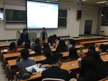 本网讯 11月18日晚7时,第21届戏剧大赛动员宣讲会于二教217召开,主讲英美文学系张兰老师、16级辅导员王晞老师及16级全体同学参加大会。张兰老师介绍到,戏剧大赛是英文学院的优良传统,其宗旨是鼓励同学们在过程与实践中学习,诠释和感受文学,并运用所学所感和创造力,赋予剧本独特的意义。它具有大众参与性和实践性的特点,能够让同学们进行再创造,培养综合能力并获得学习提升机会。为了让同学们有直接的感受,张老师还设置了互动环节,让同学们尝试模拟“大明星与粉丝”“通缉犯与警察”,现场气氛活跃。