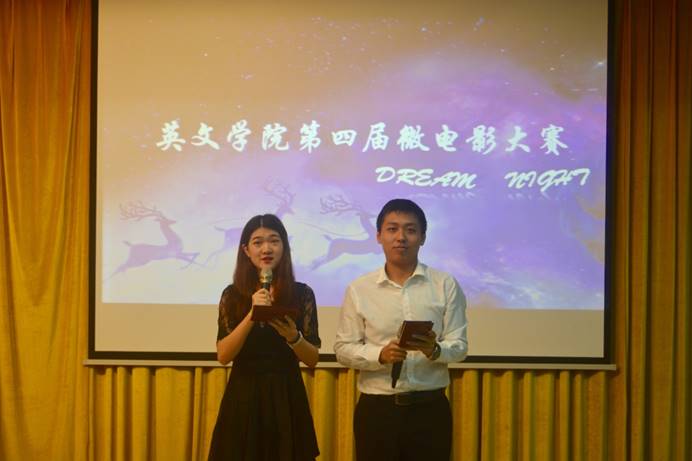 126日下午230,英文学院第四届微电影大赛在第七教学楼水上报告厅举行。英文学院院长张欣教授、党委书记林绍雄、文化系主任韩锐副教授、文化系彭保良副教授、大赛指导老师丁少彦副教授、TNS艺术总监周宇翔先生、各年级辅导员及16级同学出席本次活动。