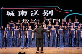 紧张刺激的抽奖环节过后,霏扬吉他协会用《走马》和《模特》两首歌曲道出青年对爱情和自由的渴望,现场气氛热烈。1811班将亲情、人性和时间的价值搬上舞台,深情演绎话剧《人生 时间 表》,发人深省。校合唱队在钢琴伴奏下演唱《城南送别》,营造长亭送别之景,使观众不禁感慨时光流逝匆匆。