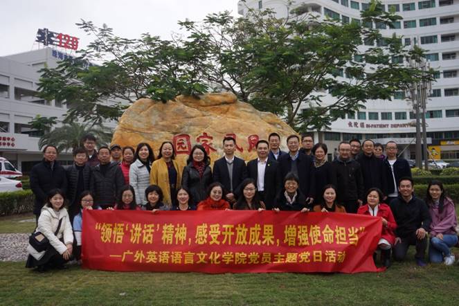 本网讯 为进一步学习贯彻落实习近平总书记视察广东重要讲话精神,感受改革开放的丰硕成果,深入开展爱国主义、社会主义思想教育和学习实践活动,12月15日至16日,英语语言文化学院教职工党员三十多人,在学院党委书记林绍雄、院长张欣带领下,前往珠海开展“领悟‘讲话’精神,感受开放成果,增强使命担当”主题党日活动。