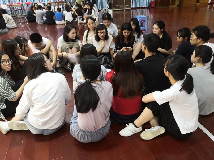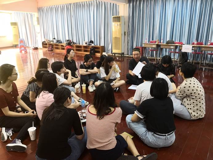 戏剧大赛系列活动之四:2019年3月20日及22日,戏剧表演专家谢明强老师给英文学院的四个剧组进行了戏剧表演培训。本次培训令剧组成员获益良多,大家在团队协作和舞台表演方面得到了一定的提升。谢老师通过游戏和团队表演等形式引导和启发同学们如何在表演中默契合作。最后谢老师言传身教,传授了戏剧表演技巧,舞台禁忌和塑造角色的前期工作等。这次培训为同学们打开了进入专业戏剧领域的大门,让各剧组受益匪浅。