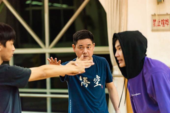 话剧表演家姜迪武(中)在指导学生