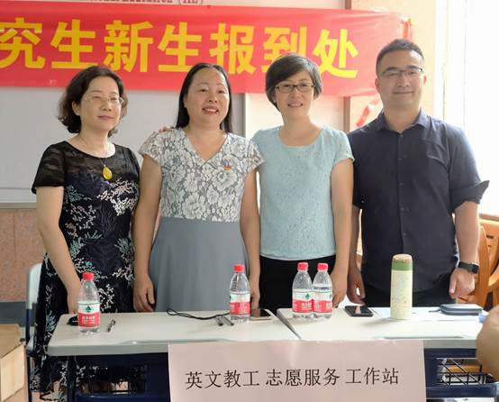 英文学院党委书记林绍雄、党委副书记黄晓梅、副院长韩锐、吴庄、刘胡敏及各年级辅导员一早便在七教大厅组织指导开展迎新工作。今年,英文学院的迎新特色:1.设立“英文教工志愿服务工作站”,学院教师来到现场,耐心地为前来报到的新生和家长解答关于教学方面的疑惑;2.“留下大学第一张照片”为新生和家长拍照服务