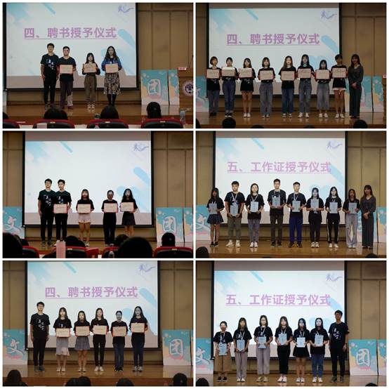 学生干部培训结束后,马骁老师为荣誉副书记、荣誉执行秘书长、新闻网荣誉部长以及第十七届一任团委各部门部长和新任干事代表颁发聘书、工作证和工作手册,张冉为第十八届学生会各部门部长和新任干事代表颁发聘书、工作证和工作手册。