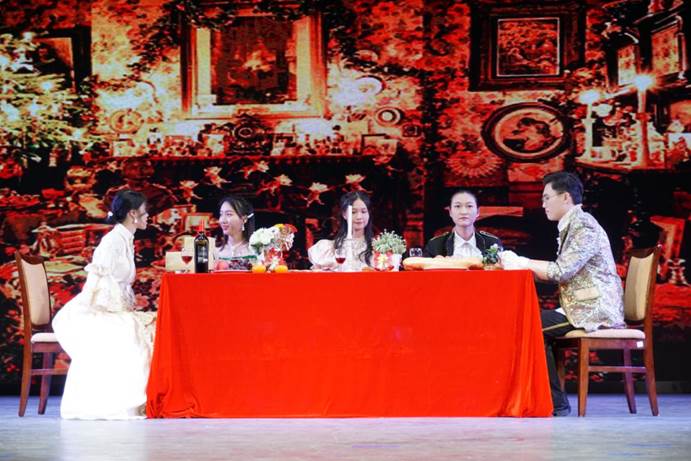 1803班的The Well以诡异的音乐、昏暗的灯光,惊心动魄的表演迅速地把观众带入到剧情之中,而选手低沉的语调,恰到好处的配音,为诡异的气氛更是增添了一份神秘,把一个杀人成瘾的儿子形象体现得淋漓尽致。一口可以让尸体凭空消失的井,紧扣观众的心弦。直到儿子把对他母亲实施家暴的父亲杀死,与此同时,井也不再拥有魔力时,重重的疑团才揭开。这个故事不得不令人深思。杀人成瘾的变态心理植根于家暴后留下的童年创伤,而这个父亲最终对儿子心理扭曲的爱,让他最终自食恶果。作品之精彩,令现场报以热烈的掌声。