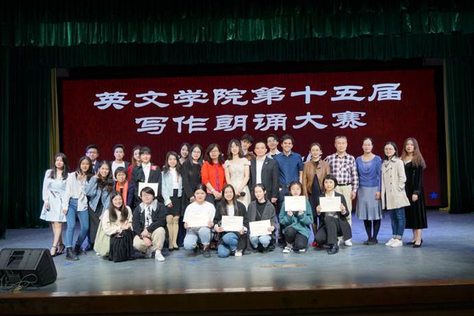 本网讯 2019年11月28日晚,英文学院第十五届英语写作朗诵大赛在六教报告厅成功举行。来自18级12个班的同学用声情并茂的朗诵和精彩纷呈的表演给现场观众带来了一场视听盛宴。最终,1805班摘得了团体表演桂冠,1805班的林小豪荣获了最佳朗诵奖。