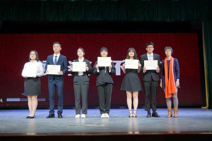 商英舞队和英文歌队的精彩演出,舒缓了班级角逐的激烈紧张的气氛,瞬间让全场燃炸。12个班级轮番展示结束后,外教Kyle Muntz教授对选手们的表现点评:对于选手的表演和配音表现都给予了高度的肯定,剧本有清晰的故事脉络和主线,角色的性格鲜明;体现了同学们对社会问题的关注,认识和思考;而且相较于去年,18级同学以一种更冷静的方式去反映社会问题。另外,教授建议同学们注意在创作时考虑真实语境,关注语言的真实性,运用更地道更自然的的表达。