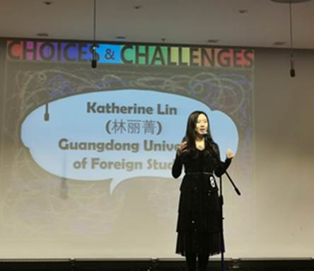 本网讯12月6日-8日,2019汕头大学英语节校际邀请赛在汕头举行。今年的英语节围绕“Choices and Challenges”的主题展开,包括三大赛事——演讲、辩论和英语歌唱比赛。英文学院经过选拔,派出4名选手参赛。林丽菁同学和陈修远同学凭着出色的表现,分别斩获演讲比赛一等奖和英语歌唱比赛一等奖(金奖)。同台竞技的选手还有来自汕头大学、澳门理工学院、京都产业大学(Kyoto Sangyo University)和印尼国立三一一大学(Sebelas Maret University)的学子。整个英语节的三场比赛精彩纷呈,几大高校的选手展现了各自的风采,也进行了丰富的文化交流。