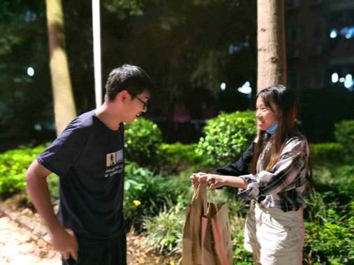 来自澳门的20级07班的黄泺贤在采访时说到:“班导在中秋佳节慰问新生,让我们感到十分惊喜也十分感动,这是一件多么幸运又珍贵的事,让留校的我们真真切切地感受到了即使在异乡过节也十分温暖。我们非常感谢学院为我们筹办了这次活动,感受到英文学院如家庭般的温暖,我们都是相亲相爱的一家人。此外,值此中秋国庆佳节之际,祝愿老师们、班导们以及可爱的同学们佳节快乐、身体健康!祝祖国繁荣昌盛!”