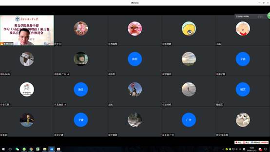 本网讯 11月12日,英文学院党委在腾讯会议平台召开了党务干部学习《习近平谈治国理政》第三卷及其宣传贯彻工作推进会。会议由英文学院党委书记林绍雄同志主持、主讲,学院党委委员、全体党支部书记和支部委员等参加了会议。