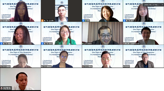 本网讯 2020年11月29日下午,在广东外语外贸大学迎来建校55周年之际,由广东外语外贸大学英语语言文化学院英语文学研究中心主办的“当代英语戏剧研究的新问题与新方法”学术论坛在线上举行。论坛邀请国内外戏剧研究界的七位重要学者做主题发言:南京大学何成洲教授、爱尔兰都柏林三一学院Sarah Jane Scaife教授、上海外国语大学李尚宏教授、北京科技大学陈红薇教授以及广外英文学院的刘岩教授、刘茂生教授和李元教授。此次论坛活动吸引了逾200位国内师生在线聆听并参与讨论交流。
