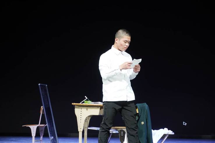 1902班的Tom is Back也讲述了与爱有关的故事。一位老母亲在给死去的儿子过生日时,阴差阳错感动了误入歧途的青年。一句由男孩写给老人的 “If you will, I’m pleased to be the Tom that cares for you and keeps you company.”感动了在场的观众。