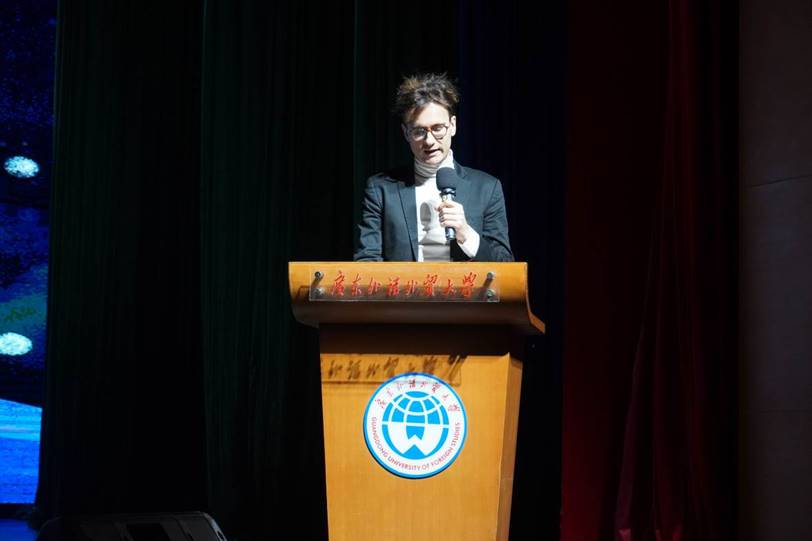 参赛作品展示完后,评委老师James进行了指导发言。他赞扬了同学们的参赛作品,同时也指出要注意发音的基础和剧本朗读的难度等问题,并强调“Less is more.”