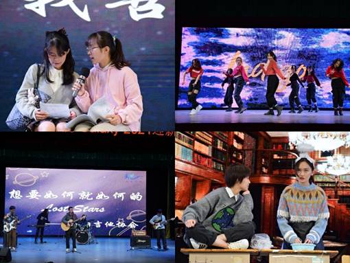1908班的《我喜欢,致广外》将对广外的深情凝聚在歌声里,让人有言不尽的感动。院舞队带来的舞蹈串烧《Venus》使全场再次沸腾。期待已久的中场游戏过后,霏阳吉他社为观众献上《Lost Stars》和《你要如何我们就如何》两首歌曲,希望大家在2021年不要迷失自己,找到方向,奋力前行。院话剧队表演的《星星记》聚焦生死与亲情,引人深思,感人至深。